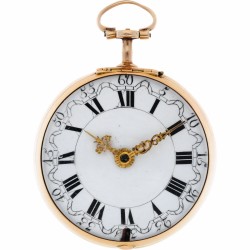 Geelgouden snek spillegang zakhorloge gemaakt omstreeks 1750 door John Wilter te Londen. Beide kasten zijn gemaakt van geelgoud. De binnenste kast in glad, de buitenste kast is voorzien van een gedreven decoratie. Het uurwerk is gesigneerd “John Wilter”. De wijzerplaat is voorzien van Romeinse cijfers. Het uurwerk verkeerd in zeer goede staat en loopt de ketting geheel af. Beide kasten zijn in goede staat en vertonen gebruikssporen passend bij de leeftijd. De diameter is 49 mm en het totaalgewicht 92 gram