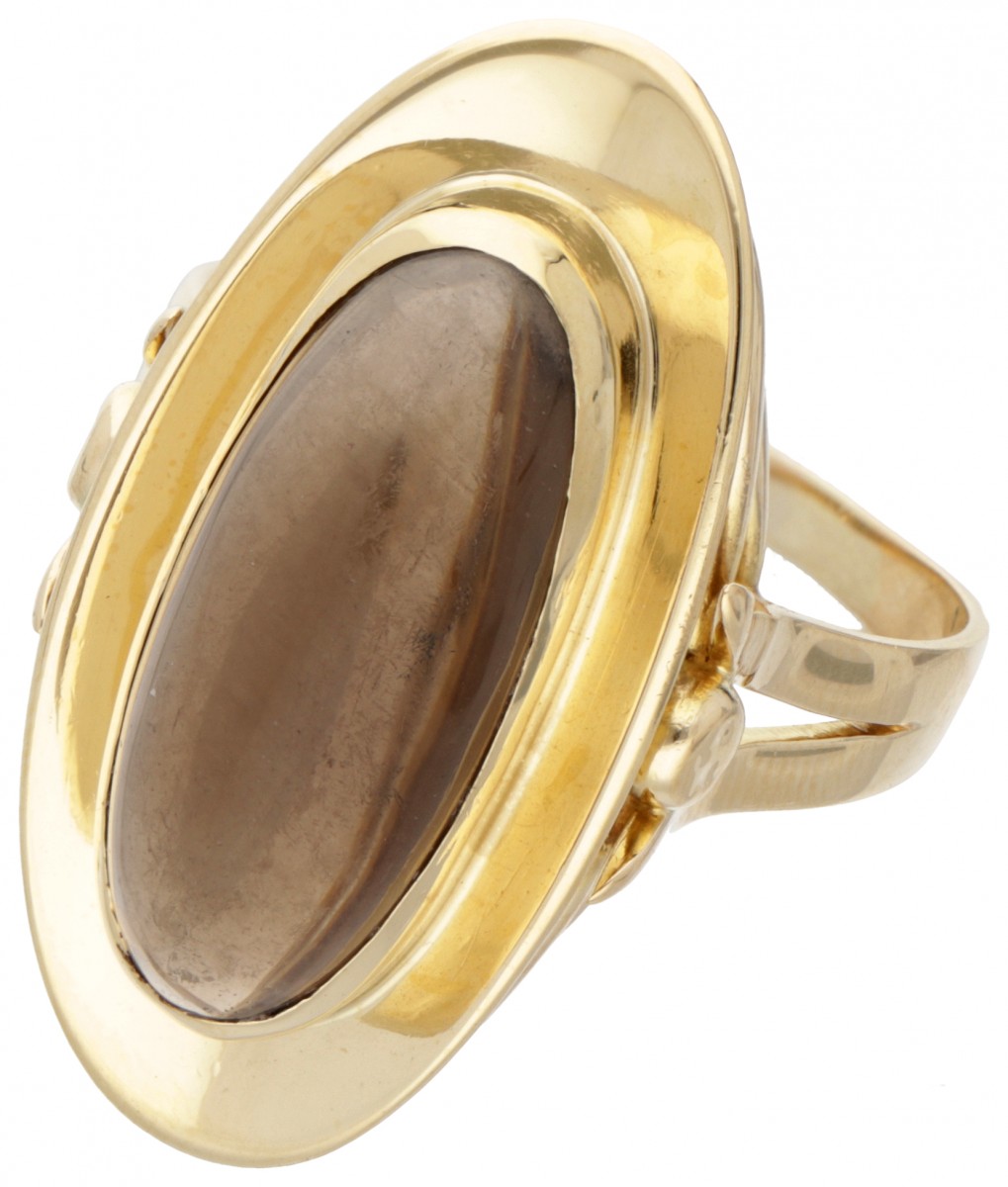#821 | 18 kt. Geelgouden A. Kurz ovale ring bezet met ca. 6.72 ct. rookkwarts.