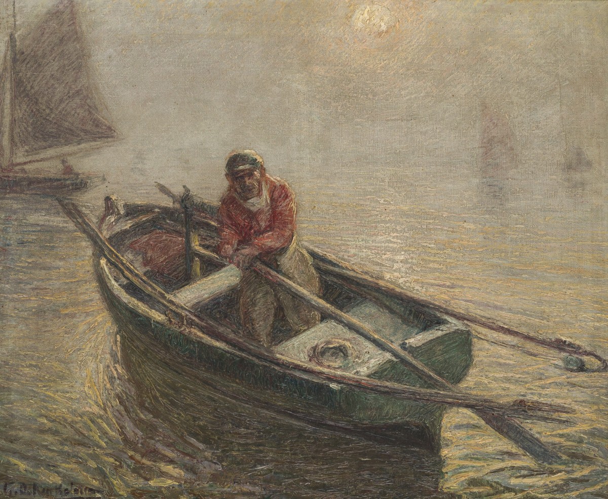 #1213 | Belgische School, ca. 1900. Een visser in zijn roeiboot.