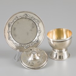 Beide uitgevoerd met traditionele versieringen, waarvan de kruidenhouder met opengewerkt deksel. Israël, 20e eeuw, keurtekens: ZI - gebruikssporen. 52 gram, 925/1000.