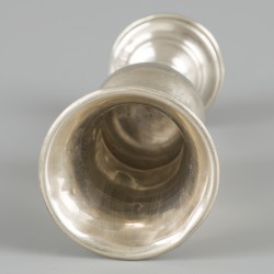 Model op voet voorzien van gegraveerde decoraties. Verenigd Koninkrijk, Birmingham, E K (onbekend), 1915, keurtekens: leeuw, anker, meesterteken, q - gebruikssporen en deukjes. 32 gram, 925/1000. Afm. H 9,4 cm.