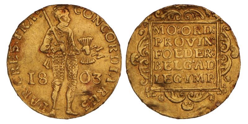 #1121 | Gouden dukaat Utrecht 1803. Zeer Fraai.