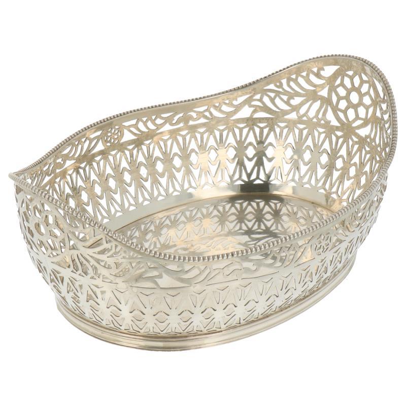 #1927 | Soezenmandje ovaal met ajour opengewerkte zijkant met opgesoldeerde parelrand zilver.
