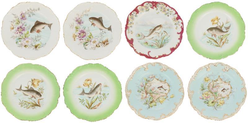 Decor van vissen. Frankrijk begin 20e eeuw. 1 Bord heeft een haarlijn. 22 x 3 cm.