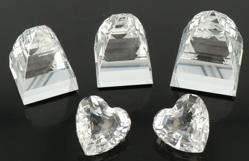 Bestaande uit 3 piramiden (helder) in diverse afmetingen en 2 harten. Geschatte opbrengst: € 40 - € 80.