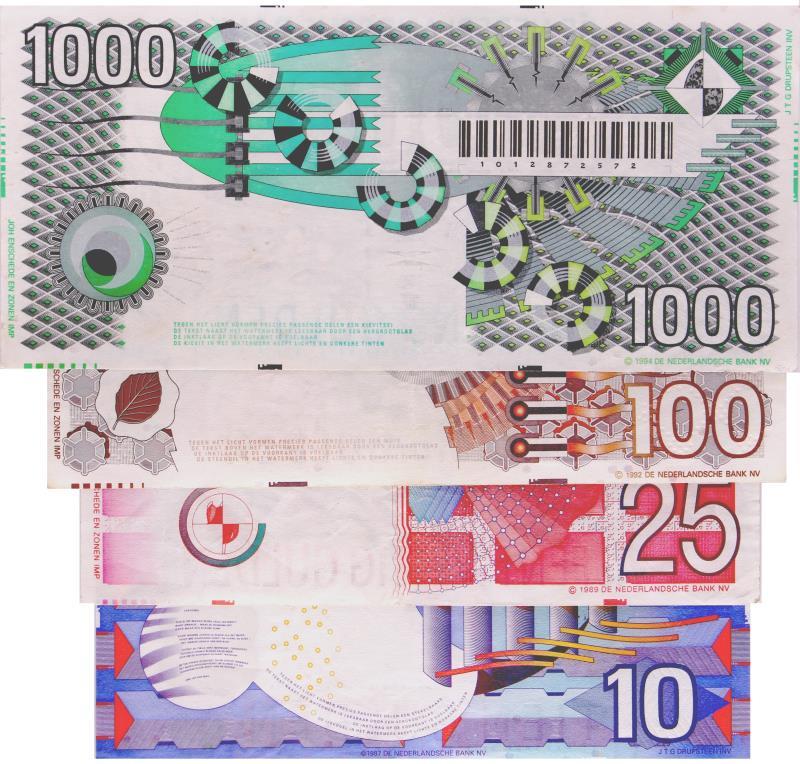 #231 | Nederland. 10/25/100/1000. Bankbiljet. Type 1989-1997. IJsvogel/Roodborstje/Steenuil/Kievit - Zeer Fraai +.