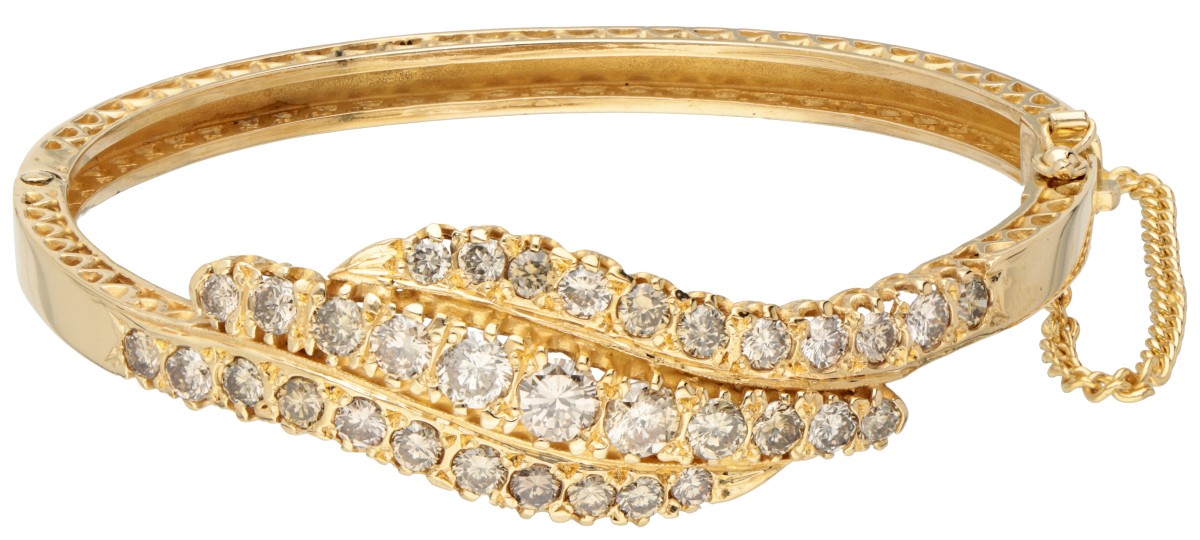 #2679 | 20 kt. Geelgouden bangle armband bezet met ca. 3.69 ct. champagne- en cognackleurige diamanten.
