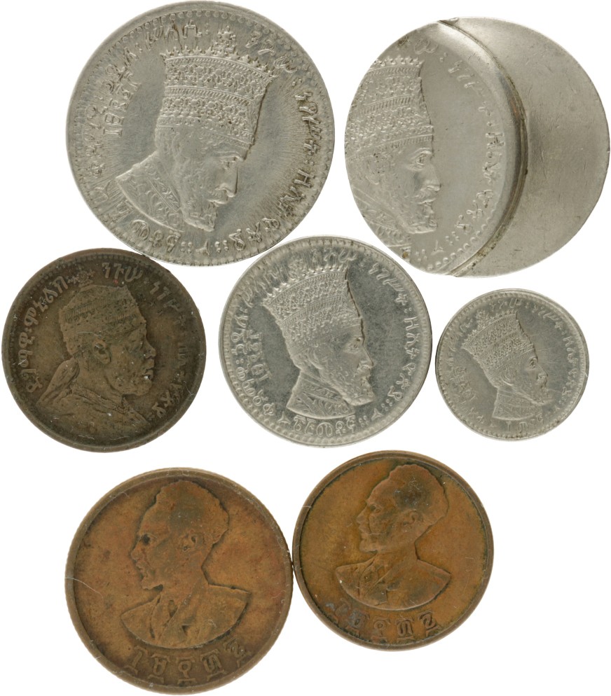 #3680 | Ethiopia. Menelik II and Haille Selassie. Lot (7) Mantonas and Santeems.