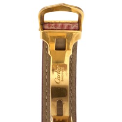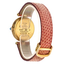 Kast: zilver/verguld (925/1000) - band: leer/vergulde Cartier sluiting - quartz - diameter: 30 mm - polsomtrek: 18.5 cm - mineraalglas - ref: 590003 - gewicht: 28,9 gram - Dit kavel wordt geveild zonder minimum prijs.