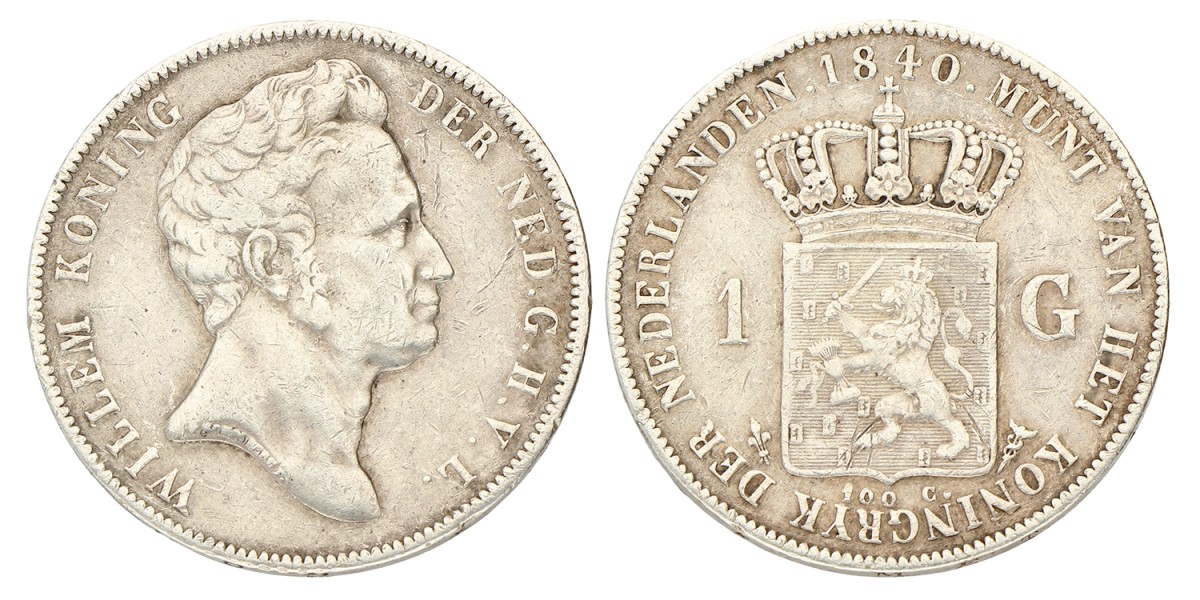 #298 | 1 Gulden. Willem I. 1840. Zeer Fraai +.