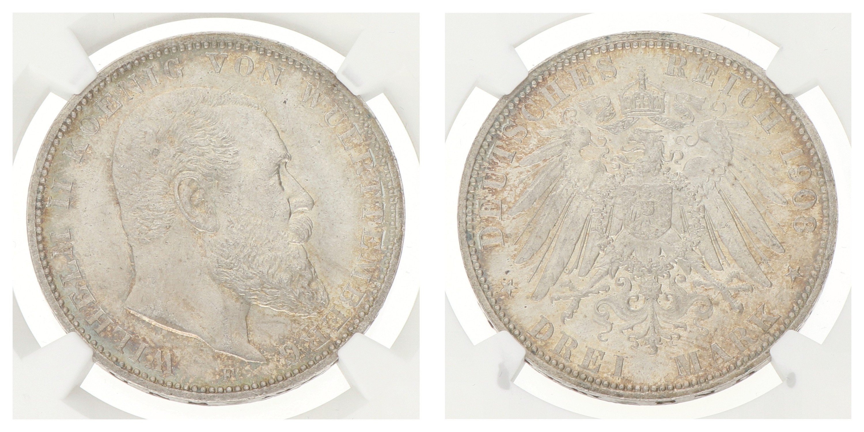#833 | German states. Württemberg. Wilhelm II. 3 Mark. 1908 F. MS 65.