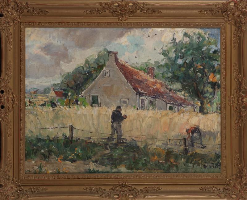 #3471 | Willem van Dort (Bergen op Zoom 1905 - 1996), Boeren aan het werk voor een boerderij.