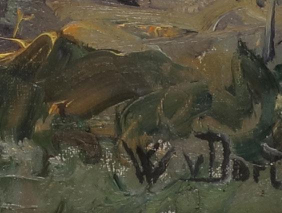 Gesigneerd ((rechtsonder), olieverf op doek. Afm. 60 x 80 cm. Geschatte opbrengst: € 100 - € 150.