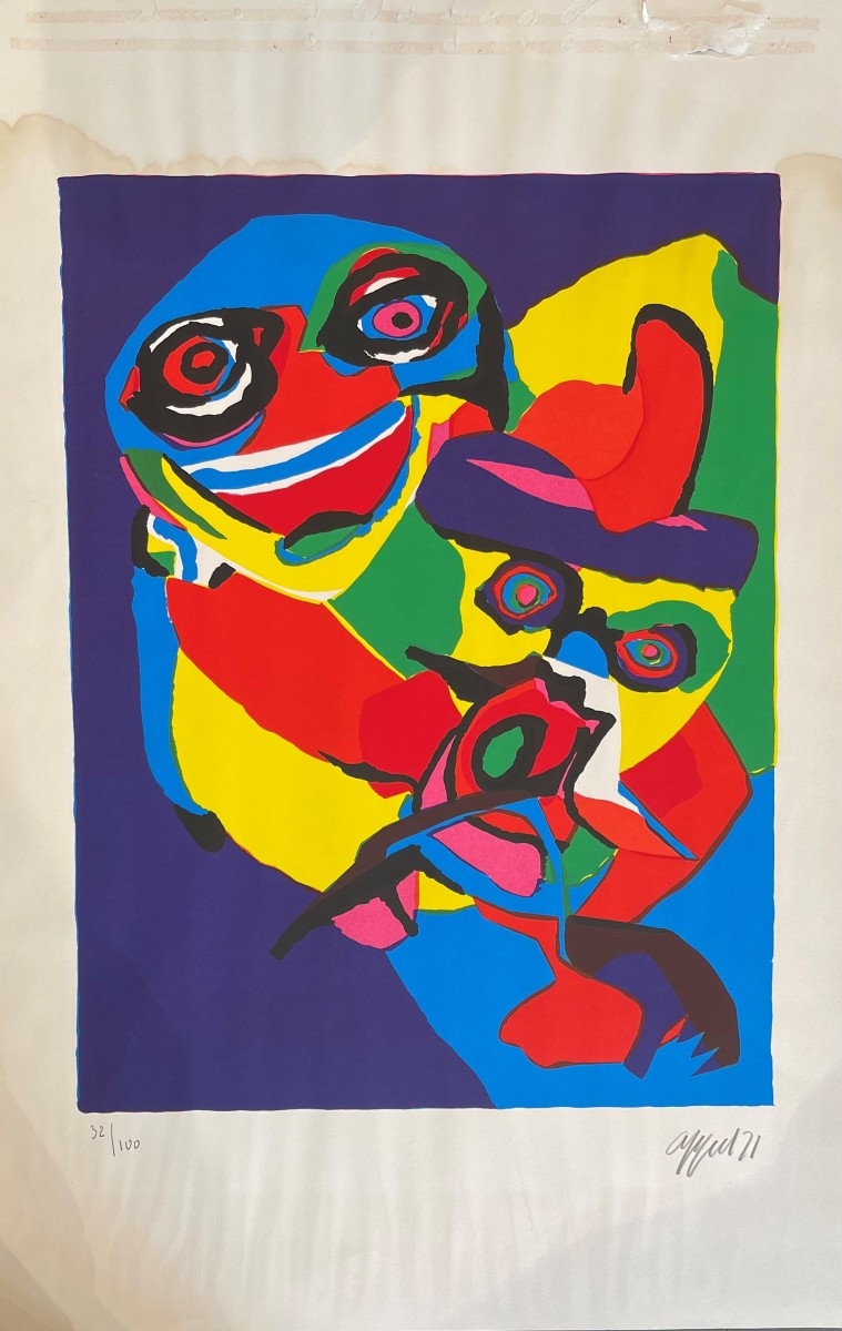 Gesigneerd en gedateerd "71" (rechtsonder) en genummerd "36/100" (linksonder), zeefdruk, Afm. 69,5 x 52,5. Waterschade. Geschatte opbrengst: € 100 - € 150.
