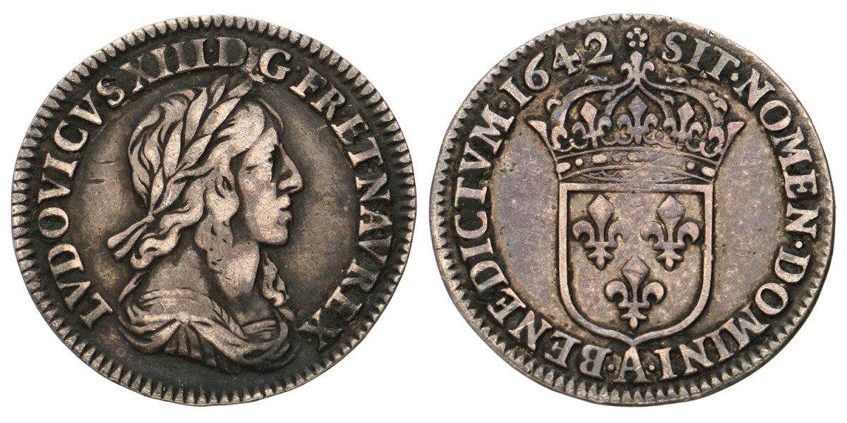 #958 | France. Louis XIII. ¹⁄₁₂ Écu. 1642 A.